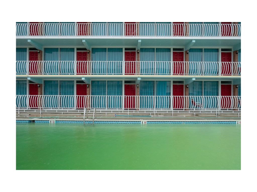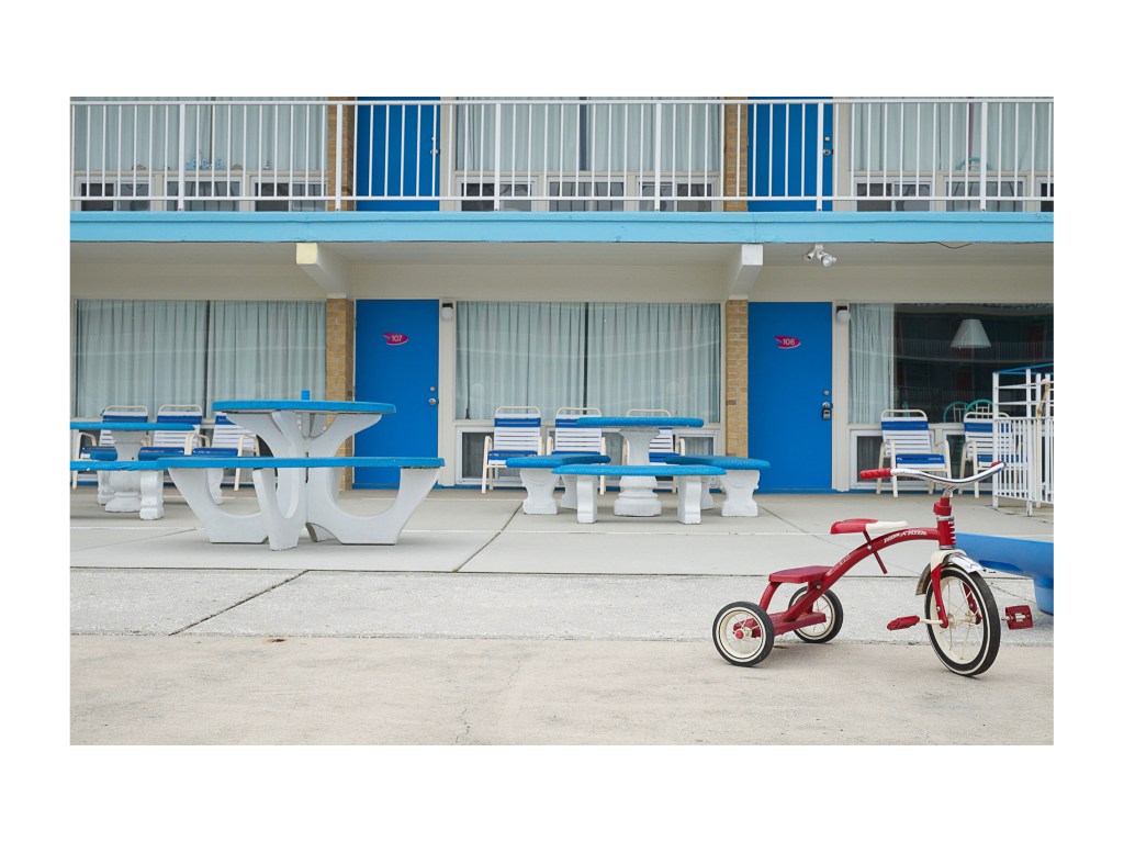 Stopping off 2O, 21, 22 times, heading off again as many times. Crossing 48, 49, 50 States, (Last but not least will be : Hawaï) fingers trigger-happy, exhilarated at the idea of capturing the American dream… It is here, overwhelmed by the vastness of it all and, above all, mesmerised by the road so vividly conveyed by Kerouac, that colour, space, a sense of infinity, really came home to me. My subsequent chance encounters with the work of Stephen Shore, Jim Dow, William Eggleston, Robert Franck and countless others, inspired me to go off and follow in their footsteps. I wanted to see, after so many years, whether the places in their work still existed. I wanted to see for myself that particular light, experience that mood. Cinema was naturally a huge influence, with Wim Wenders’ “Paris Texas” and “Don’t Come Knocking” leading the way. Gradually, my project took shape under the working title “Mad(e) in USA”. It matured over several years as the people and smiling faces I encountered allowed me to put my finger on the charm of this continent, to grasp the reasons for its legendary attraction. From the Lorraine Motel in Memphis to the hot rod races on the Great Salt Lake, I developed a fascination with these wild open spaces, this intensity and these distances… There are, without doubt, a few cultural differences, but for a European brought up to the sound of rock ‘n roll and fed on sitcoms such as “Happy Days”, touching down on American soil is far from being a cultural shock. For me, it was more of a revelation.